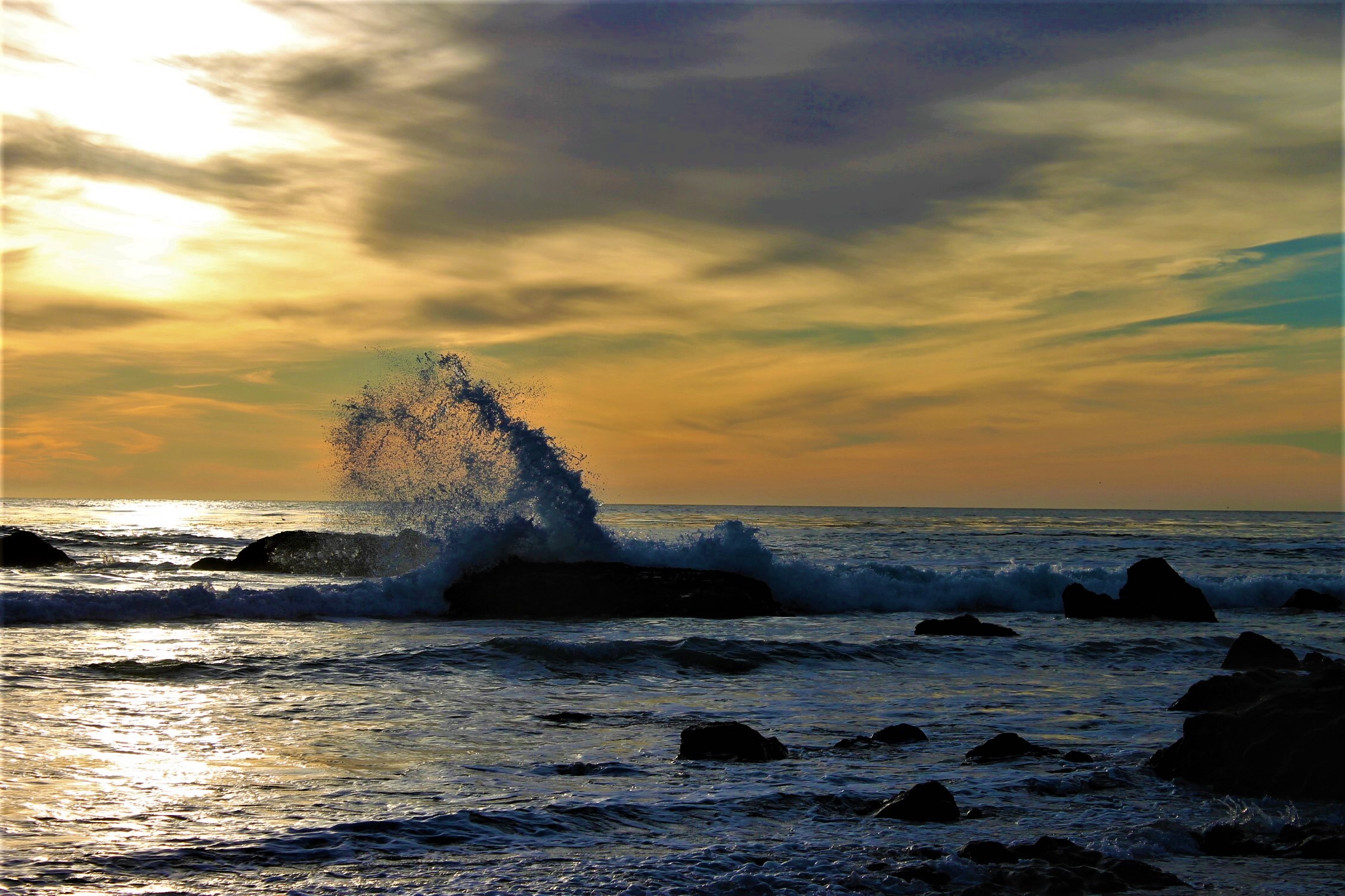 December 2017, the missus and I went to San Simeon for a few days. Most of the hotels there are on the west side of Hwy 1 and back up to the beach. We checked in around 3:00 and then wandered down to the beach. A few hundred yards to the north we found a spot to watch the sun set with camera in hand. For the next couple of hours, I didn’t stop taking pictures. The combination of clouds and rocks, surf and sand, was absolutely perfect. As the sun went down, the colors went from blues and yellows to fiery reds and oranges. The full gamut of colors was on display and I took a lot of pictures that night. Ever since, I’ve been chasing something that compares. I’m still searching.